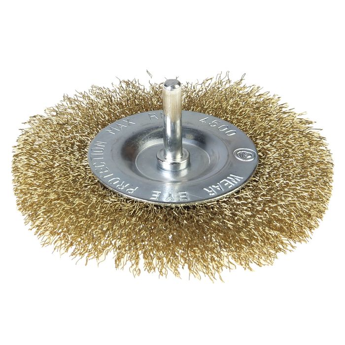 Щетка для дрели 100 мм, плоская со шпилькой, латунированная витая проволока// Matrix 74450