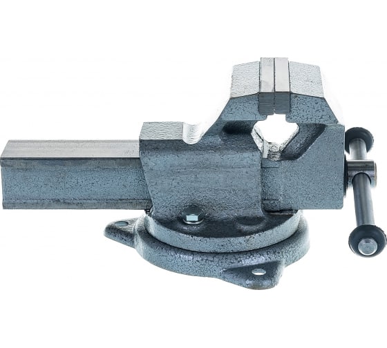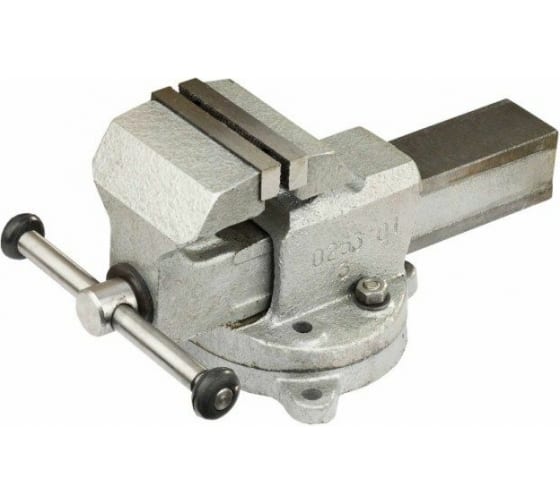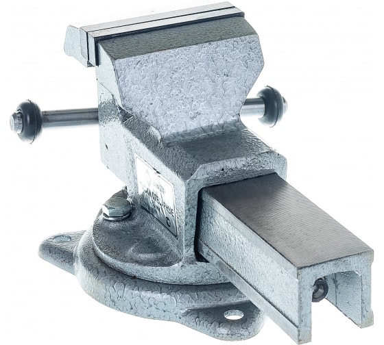 Регулирование положения тисков во время работы осуществляется при помощи поворотного механизма в основании.