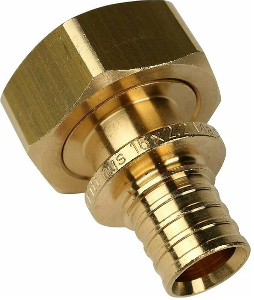 Аксиальный фитинг применяется для соединения труб из сшитого плиэтилена. Из-за надежности соединения используется при скрытой проводке систем отопления и водоснабжения. Материал фитингов - латунь.