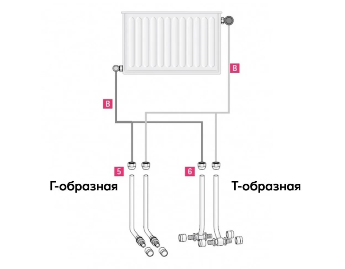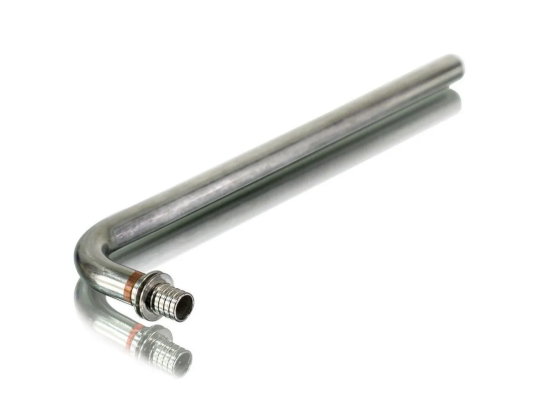 С одной стороны трубка имеет аксиальное соединение 16 (надвижная гильза в комплект не входит), а с другой стороны осуществляется обжим через резьбовой адаптер. Этот адаптер накручивается на узел нижнего подключения радиатора.
