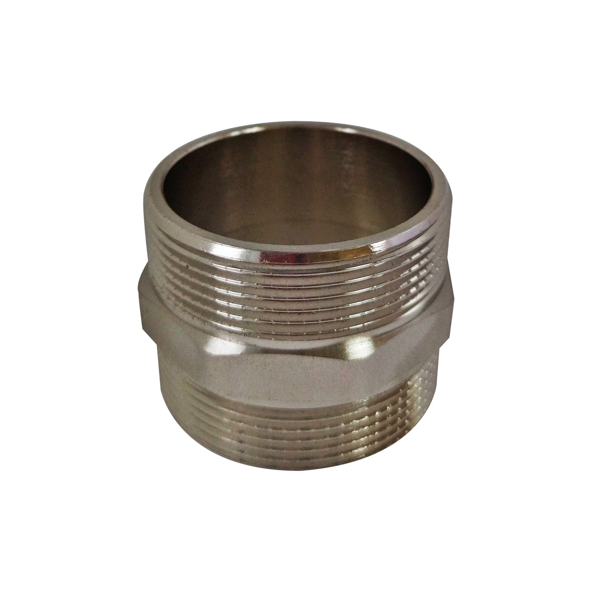 Резьбовой фитинг – ниппель полнопроходной. Обеспечивает соединение элементов трубопровода разного диаметра. Выполнен из латуни горячим штампованием с последующим никелированием.