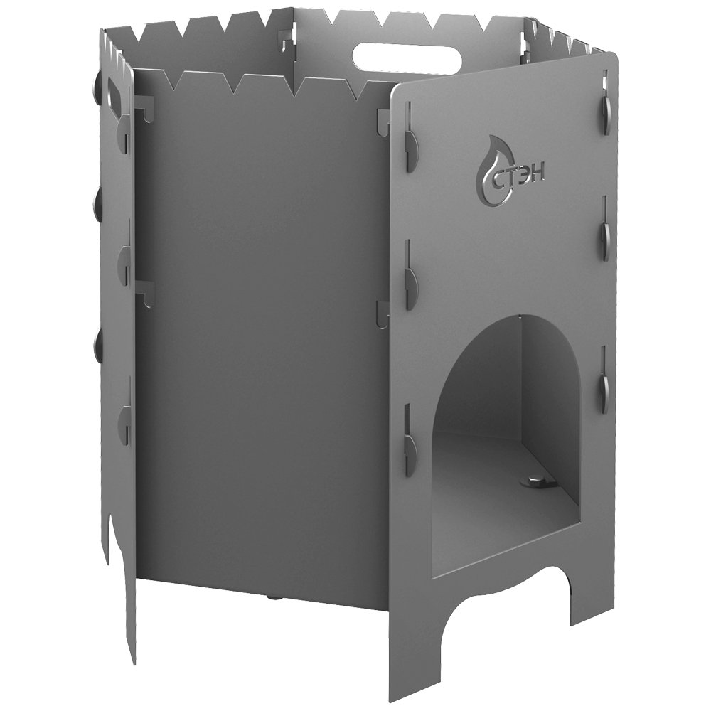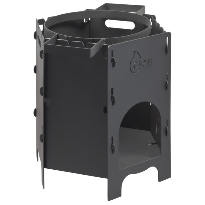 Печь может использоваться как уличный очаг. Изготавливается из стали толщиной 3 мм. Печь комплектуется* накладным кольцом и сумкой.