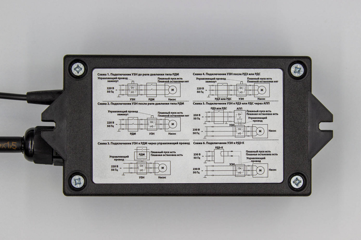 Обладает функцией обучения характеристикам подключённого насоса, что позволяет применять УЗН для любого насоса, подходящего соответствующей модели УЗН по мощности.
