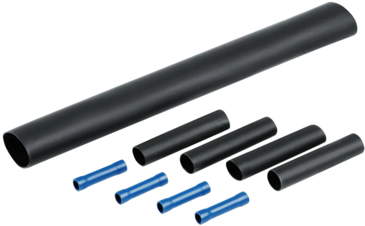 Отличная фиксация, изоляция, герметизация места соединения электрического кабеля достигается за счёт термоплавкого клеевого состава нанесённого на трубки.