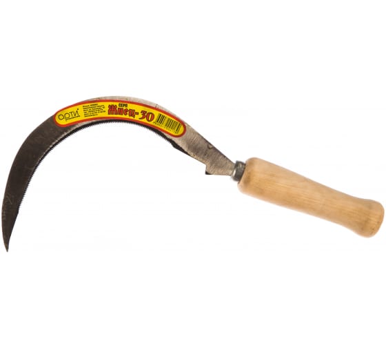 Серп Россия Жнец-30 39836 предназначен для скашивания травы и сорняков вручную. Широко используется на дачных участках. Инструмент оснащен прочным лезвием с зубчиками. Деревянная ручка и полотно надежно зафиксированы между собой.