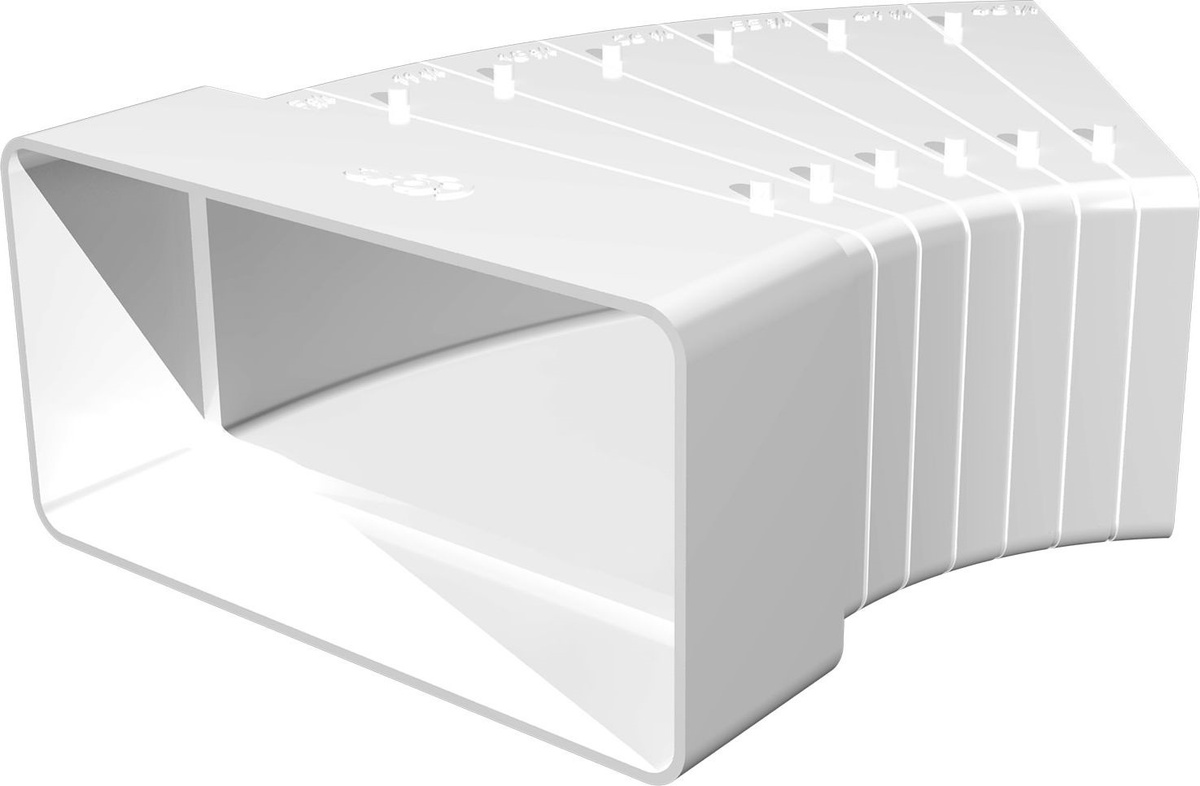 Для соединения воздуховодов соответствующего сечения под углом от 3° до 48°. В зависимости от выбранного угла одна сторона соединителя подрезается. C каналами соответствующего сечения соединяются напрямую.