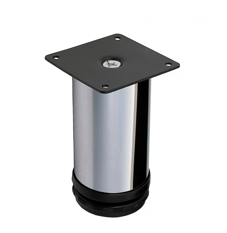 Стальная хромированная опора диаметром 60мм и высотой 1 м. 10 см. (с возможностью регулировки +20мм). Имеет площадку с отверстиями для крепления и регулируемый ПВХ подпятник. Материал ножки - сталь. Применение: барные столы, столы офисные, столы для кухни, стойки, приставные столы и т.п. Максимальная нагрузка на единицу ~50кг.